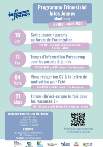 En dehors de ces horaires, il est possible de prendre un rendez-vous avec un informateur jeunesse >>> pij.montlouis-sur-loire@ijcentre.fr